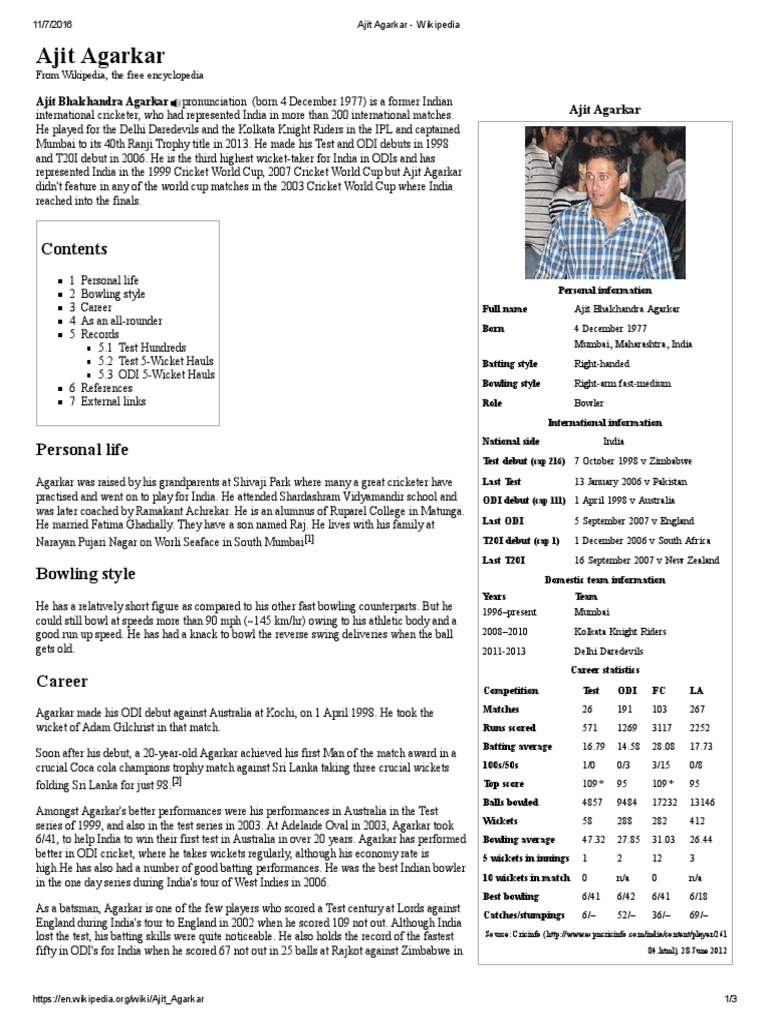 Ajit Agarkar Wikipedia Ball And Bat Games Forms Of Cricket - Agarkar the odi bowler was more popular than agarkar the test bowler.