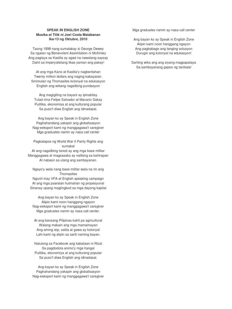 Bayan Ko And Other Songs The Soundtrack Of Philippine Political Activism Social Sciences Humanities Book Chapter Igi Global - It focuses on how the philippines was taken over because of its beauty and splendor and how it will soon gain back its freedom, for the.