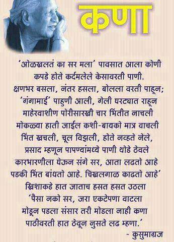 Kana Marathi Kavita Lyrics : Chitra on dec 14, 2018. Kana Marathi Kavita Lyrics - Watch kusumagraj's one of most famous marathi kavita 'kana' विशेष आभार श्रीमती.