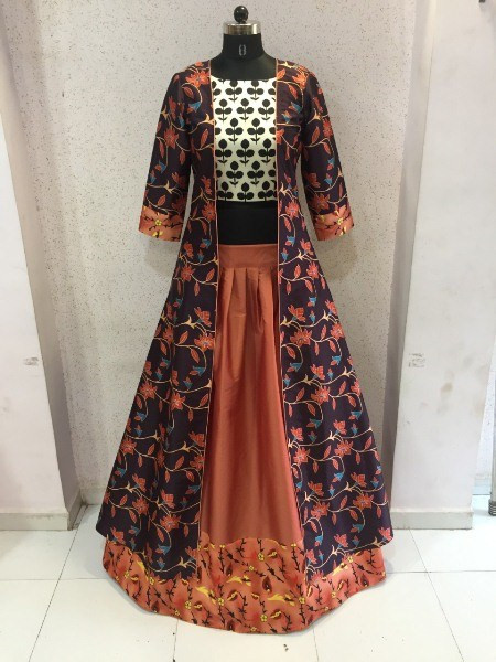 Party Wear Crop Top Lehenga With Jacket / Designer charming black party wear lehenga choli. Party Wear Crop Top Lehenga With Jacket - For a crop top that can take you from the beach to dinner, choose one with lace or billowy sleeves.